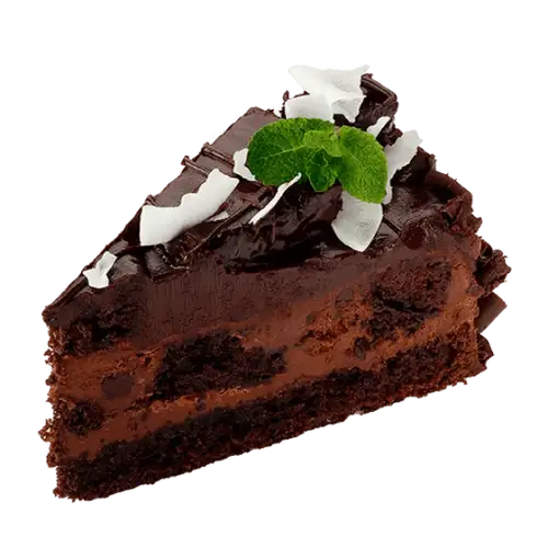 Торт с нежным бисквитом, темным шоколадом, украшенный клубничным топпингом, кокосовыми чипсами и мятой