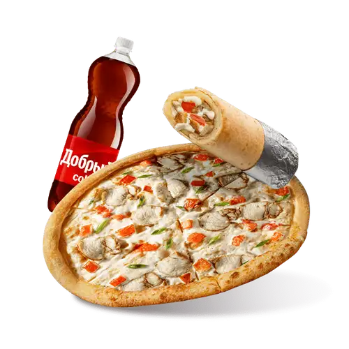 Пицца Хот Чикен 25 см / Фудстер Чикен фреш / Добрый Кола 0,5 л