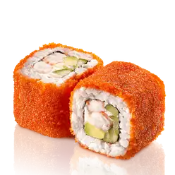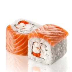 Больше размер - больше начинки! Лосось, тигровая креветка, сливочный сыр, икра тобико, нори, рис заправленный