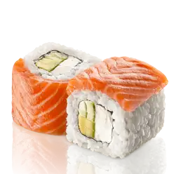 Больше размер - больше начинки! Лосось, сливочный сыр, авокадо, огурец, нори, рис заправленный