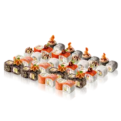 Black ролл с лососем, креветкой и опаленным авокадо / Тартар ролл с лососем и шиитаке под соусом спайс / Майами / Венеция